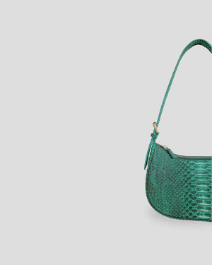 Ophira Bag is a luxury shoulder baguette bag crafted from 100% genuine python leather, featuring a natural scale pattern that makes each piece one-of-a-kind.